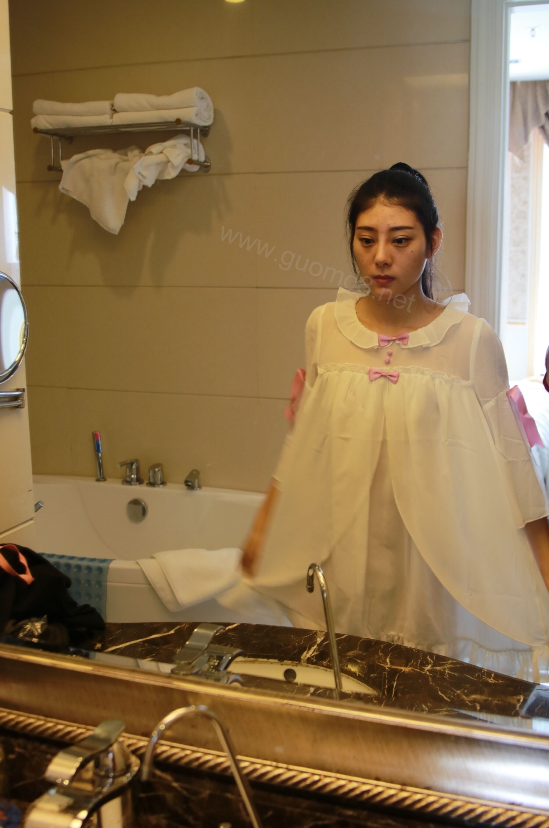 本站对私自加水印这一做法非常反感,我们认为只有模特本人或者发行机构才有资格加水印,所以大部分情况我们的套图都是没有水印的,但有时候只能找到水印版本,也会先上线,如果日后找到无水印版本会第一时间替换。